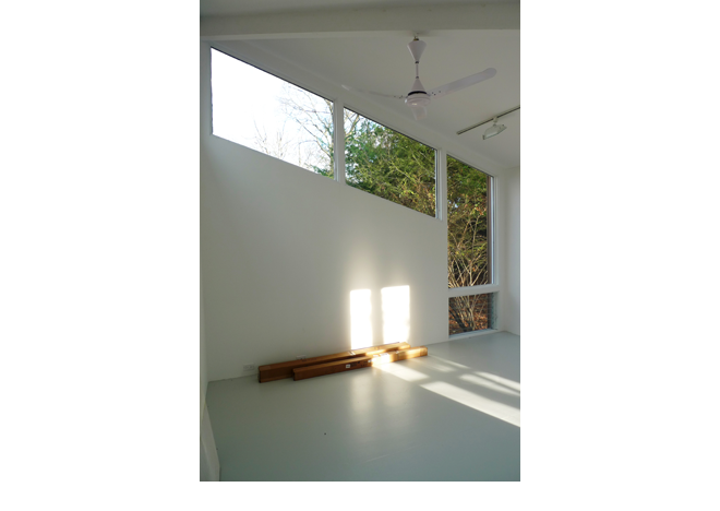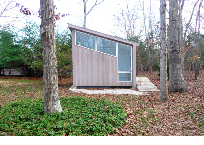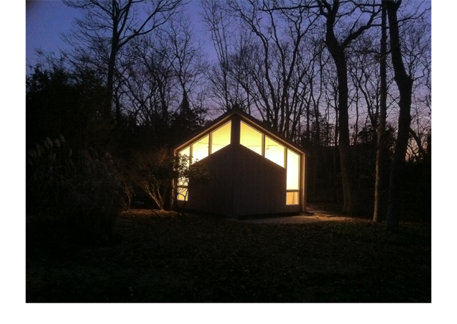 This simple 15 x 15 x15 foot building carefully negotiates natural light and site specificity to create a dynamic painting studio. The ridge of the building points directly North, and the windows rise and fall symmetrically, following the path of indirect sunlight. The building interior has no cast shadows inside it, as it maximizes year-round indirect light. It is a humble building with thought-out detailing, a perfect place to paint and make art.