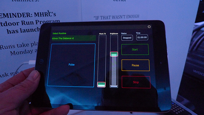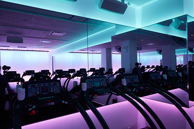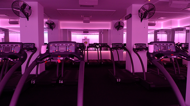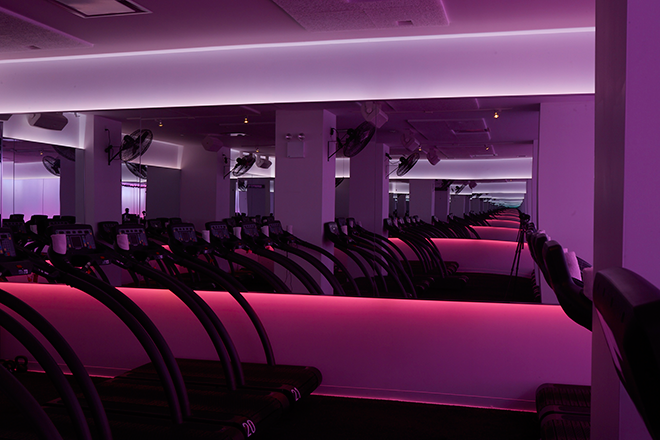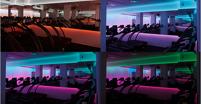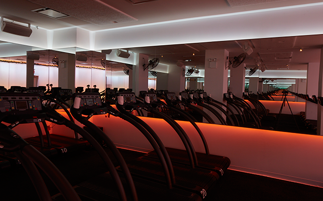The Mile High Running Club is a indoor treadmill based excerise class- the first of its kind. For the lighting concept, we started with the slow and inspiring color changes of sunrise and sunset- the most magical time of day to run outside. Using a variety of RGB lighting, we worked closely with the trainers to art direct a series of sequences that work with the flow of the class. We created custom software and a ipad controller that can vary the saturation level as well as integrate the pulse of the music into the lighting. The lighting design and installation for the Mile High Running Club was created by Craig Maldonado, Brendan Burke and Erland Sanborn.
