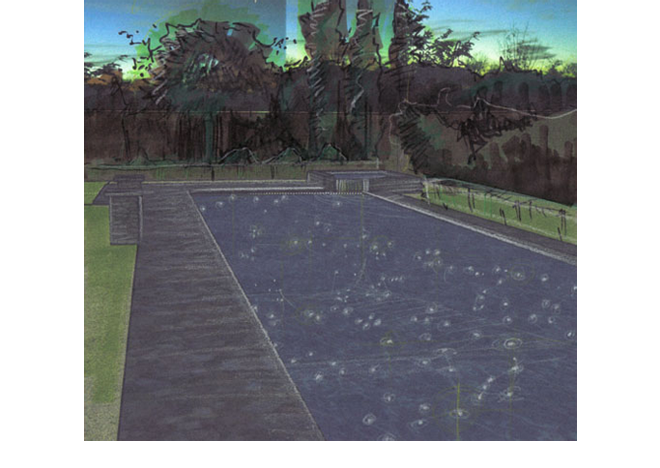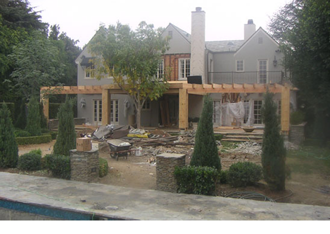 The challenge: taking apart a seemingly perfect three million dollar historic house with a nearly new pool, and transforming the backyard into a true oasis. The client, an avid swimmer, requests an official Olympic length pool of 25 meters, or 82 feet, which barely fits within zoning set backs. This new, tremendous pool is entirely “natural”: a sophisticated oxygen ozone/uv light/copper silver purification system insures that chemicals will never need to be added (the pool is even filled with 60,000 gallons of purified water). Three hundred and fifty fiberoptic lights are scattered along the bottom on the pool using the constellation map as a layout. Inside the house, the master bedroom is located to the center of the house, creating a large upstairs stone patio from which to view the newly developed grounds. A second floor deck is added, including a sandblasted wood arbor with California grapes for shade in a previously blistering hot patio. The redesign of the south facade not only melds seamlessly with the historic English manor style architecture, but also creates a dramatic presence and reorients the house rightfully toward the pool. The General Contractor for the pool is Avanti Pools and water filtration by Oxygen Ozone; Cal Asia Construction built the deck and arbor under Craig’s direction as the project designer as well as the client representative.