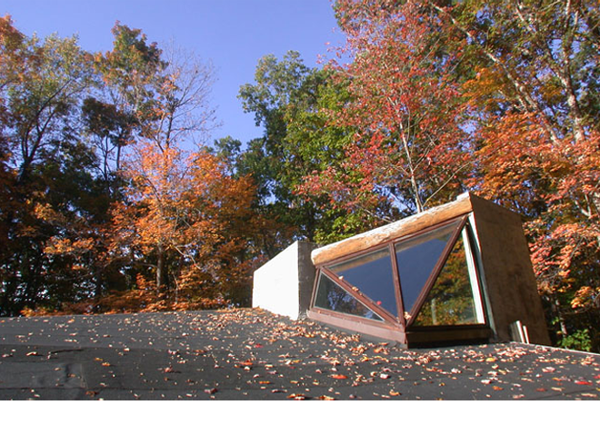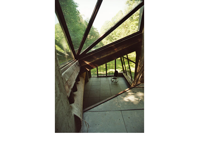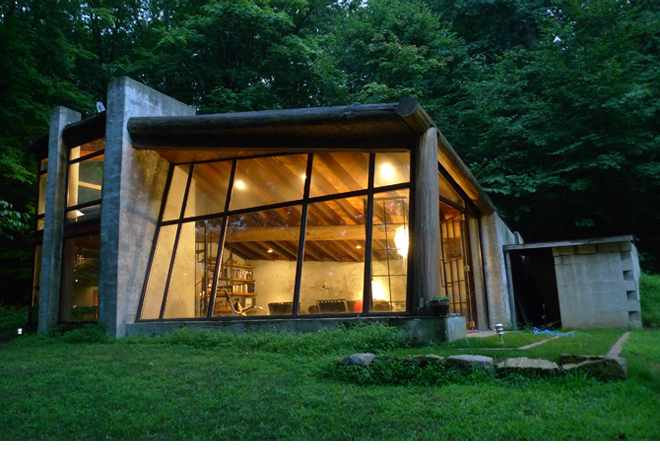 Originally commissioned as a sculpture studio on Schooleys Mountain in rural New Jersey, and filed officially as a “shed,” this project has since taken on a life of its own. The studio, which digs into the hillside, is made of concrete block; oak trees, harvested from the site; and rough-sawn wood planks, originally purposed as formwork for highway roadwork, function as joists. The building process is a highly sculptural one of mock-ups, additions, subtractions (physical as well as contemplative), and criticism—a rare opportunity in the field of design and construction, and a great benefit to the end result. Craig did the majority of the construction himself, assisted by Brian Purdy (masonry, framing); Kate McEldowney; and metal work by Hard Decor of Brooklyn, New York.