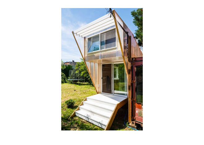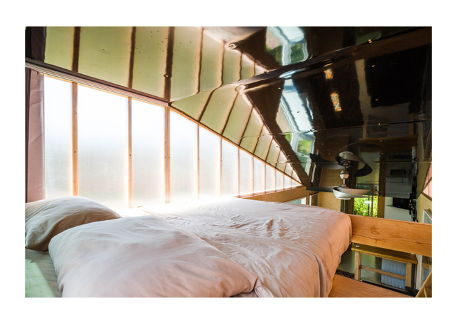 A Construction trailer is converted into a very stylish and efficient mobile living quarters.